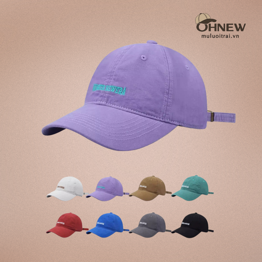 Mẫu mũ nổi bật với tông tím pastel lạ mắt, mang lại cảm giác trẻ, sáng và có chút cá tính riêng.